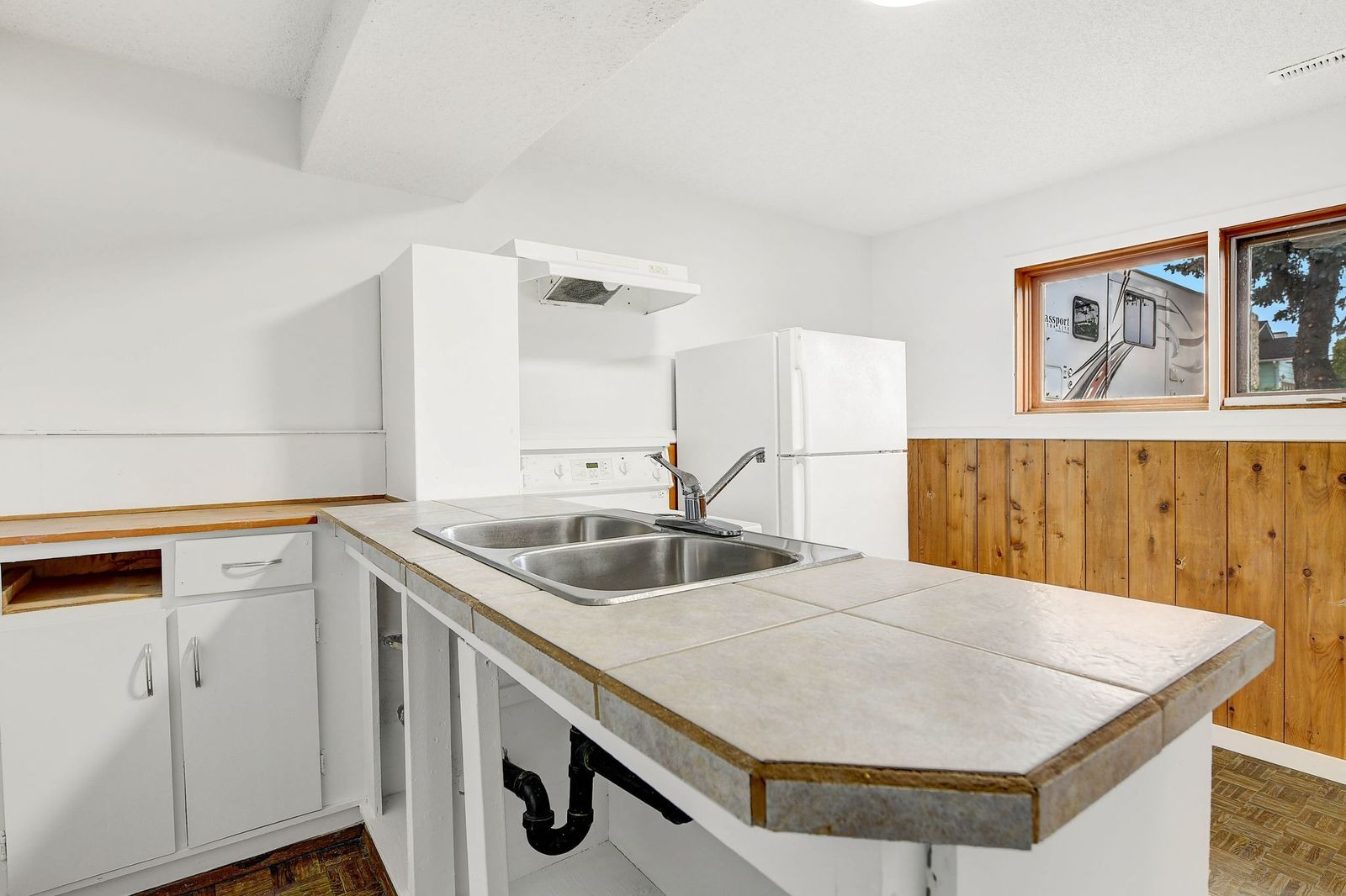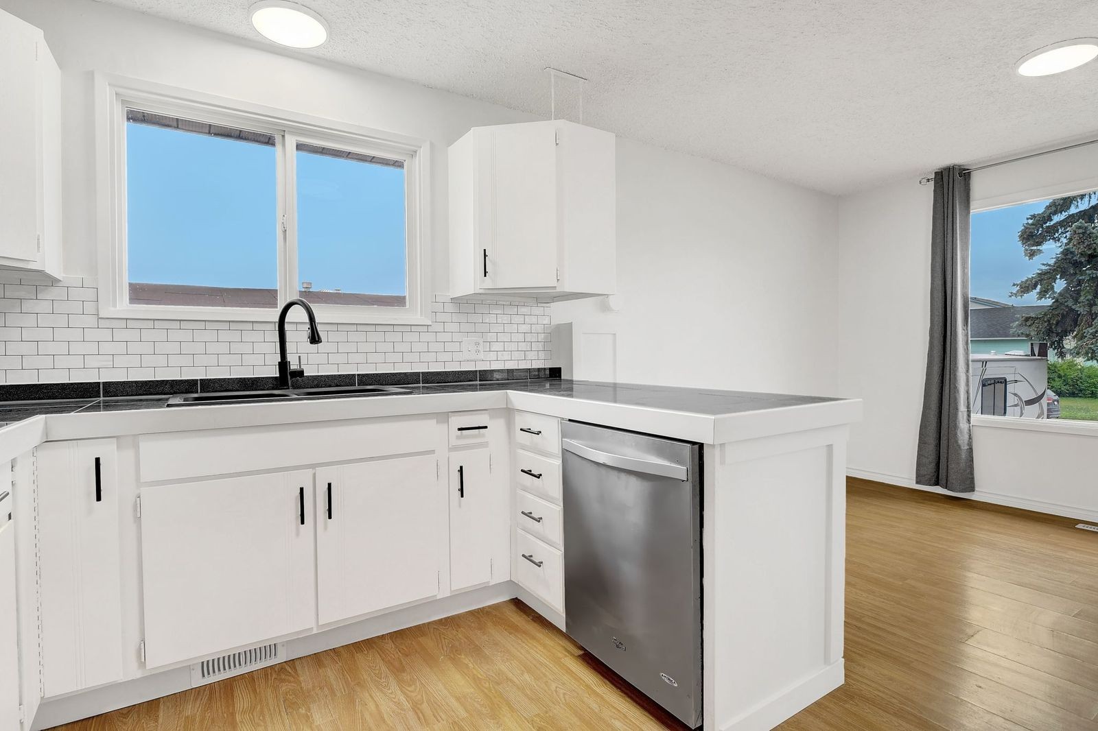 Freshly painted throughout and extensively updated, this 1,040 sq. ft. 5 bedroom, 2 bathroom bi-level offers the perfect mix of comfort, functionality, and income potential. With a separate entry, 2 bedroom in-law suite, it’s an excellent fit for families needing extra space or investors seeking rental income, all in a prime location near schools, parks, and walking trails.Upstairs, natural light fills a welcoming living room anchored by a wood-burning fireplace with a sleek granite tile hearth. The kitchen has been stylishly refreshed with new granite tile countertops, stainless steel appliances, including a new fridge and over-the-range microwave, plus a new sink, taps, and lighting. The dining area includes new laundry hookups, offering the option of a second laundry space for those planning to rent out the basement. Three bedrooms with updated doors, closets, and hardware, along with a refreshed bathroom featuring new fixtures and finishes, complete the main floor.The lower level is a true highlight, offering a separate entry, 2 bedroom in-law suite that’s designed for versatility. It includes two generously sized bedrooms with brand new full-size egress windows that enhance natural light and meet current safety standards, along with a bathroom updated with a new sink, vanity, toilet, mirror, and lighting. A refreshed laundry area with new hookups adds convenience, making this suite a bright, functional, and safe living space for tenants or extended family.Outside, the property offers a partially fenced backyard with brand new fencing on both sides, a storage shed, and a long driveway with plenty of parking. A newer roof (2020) provides added peace of mind.With numerous updates, and excellent suite potential, this home is move-in ready and full of opportunity. Don’t miss your chance! Call 780-882-3000 today to schedule your private viewing.